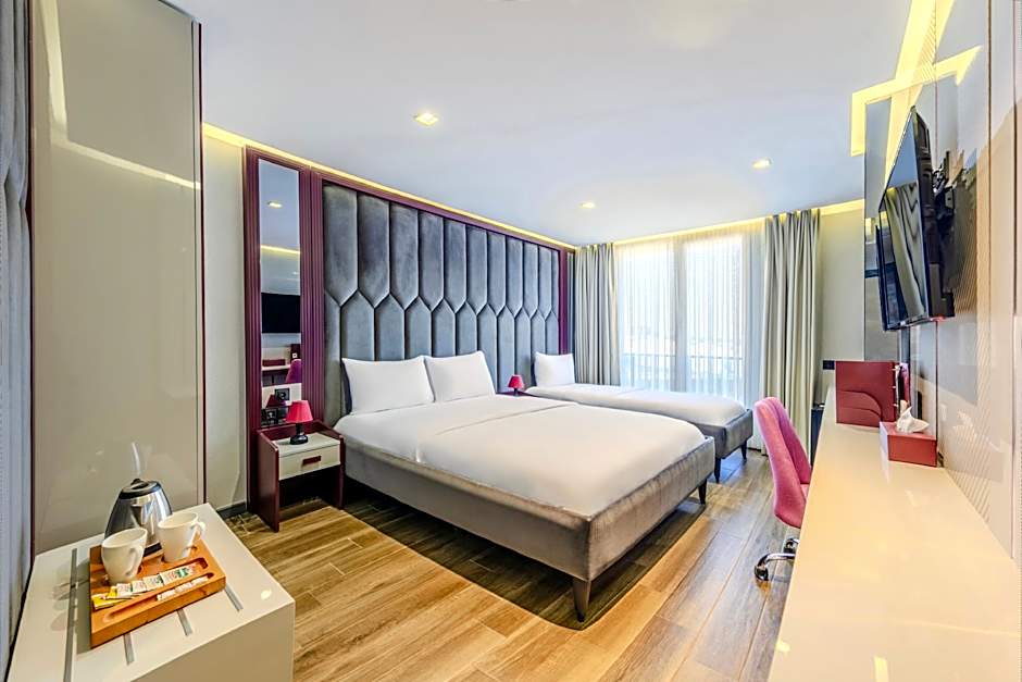 Now let's talk about the cozy and inviting rooms at Heaven Premium Hotel Restaurant & Airport Shuttle. The Deluxe Triple Room is perfect for small groups or families, accommodating up to three adults. With a spacious 194 sqft of space, you'll have plenty of room to relax. The room features one twin bed and one double bed, ensuring a comfortable night's sleep for everyone.